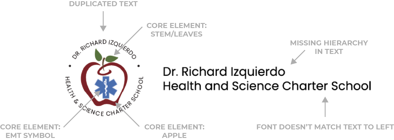Dr. Richard Izquierdo Health & Science Charter School in Bronx, NY, is a public and free charter school providing education to kids where upon graduation, they are certified EMTs. This school came to me looking to breathe some life into their existing logo, while maintaining the core elements and looking fresh. Below is a summary of how the new logo came to be. See the brand at work on the website here.